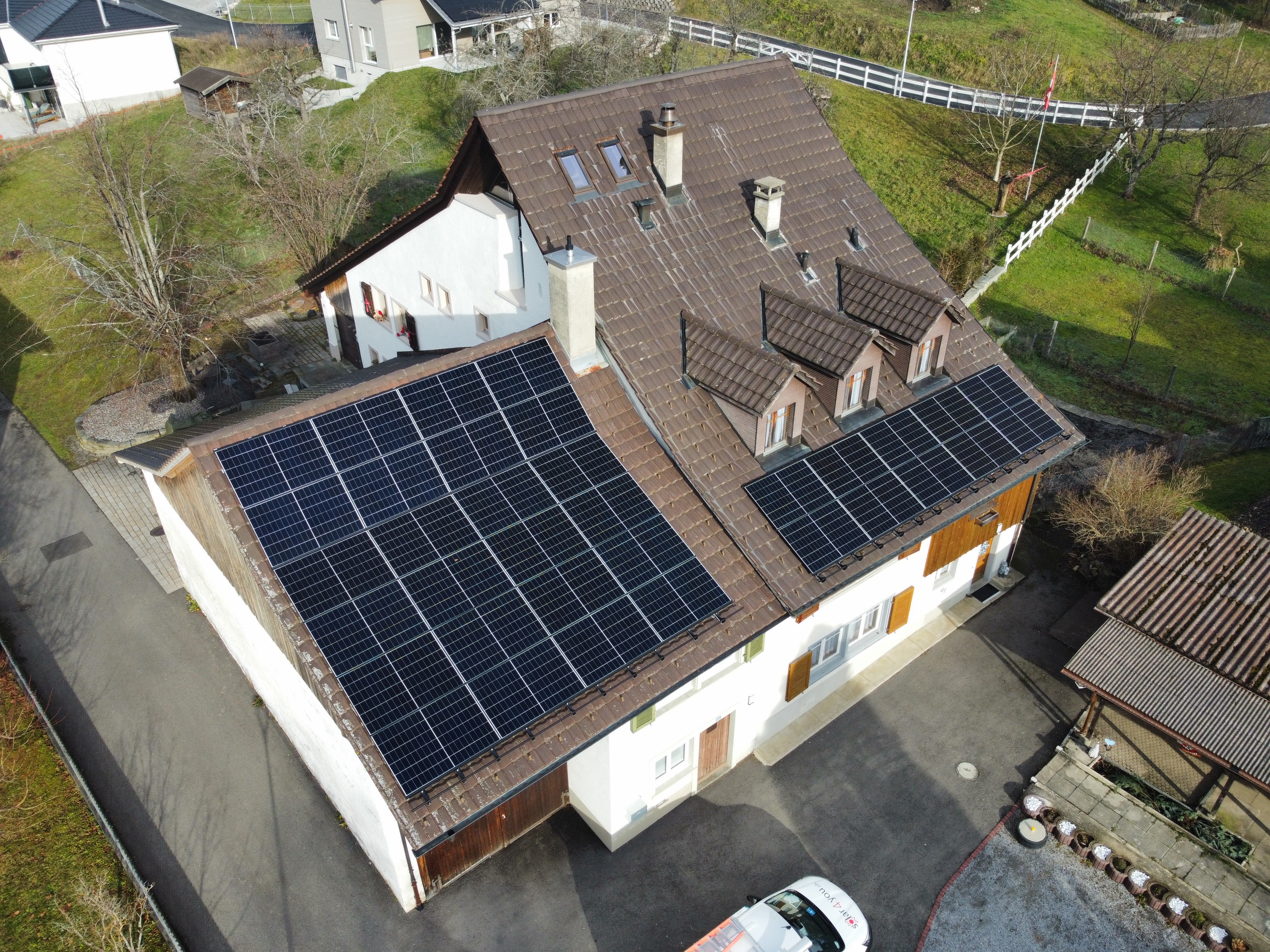 Auf diesem Doppel EFH in Lauwil durfte Elektro4you die Photovoltaikanlage realisieren sowie einen Stromspeicher installieren.